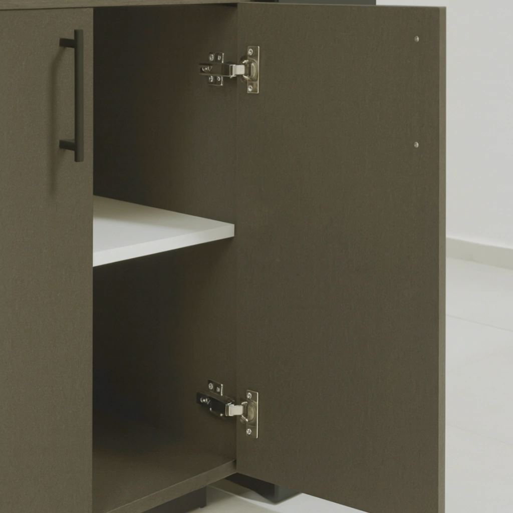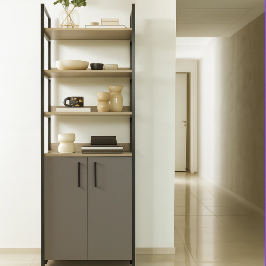 Tiene lo mejor de dos mundos, por un lado, podés dejar cosas a la vista en los estantes para que los alcances fácilmente. Por otro lado, podés guardar lo que necesites en los estantes con puertas.