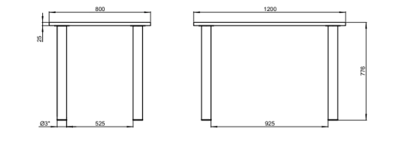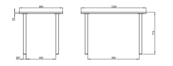 Mesa Pérez: 77,6cm alto x 120cm largo x 80cm ancho