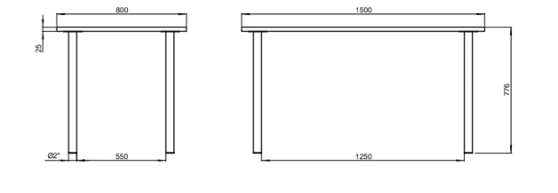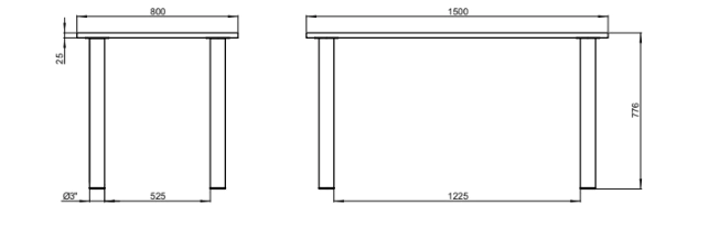 Mesa Pérez: 77,6cm alto x 150cm largo x 80cm ancho
