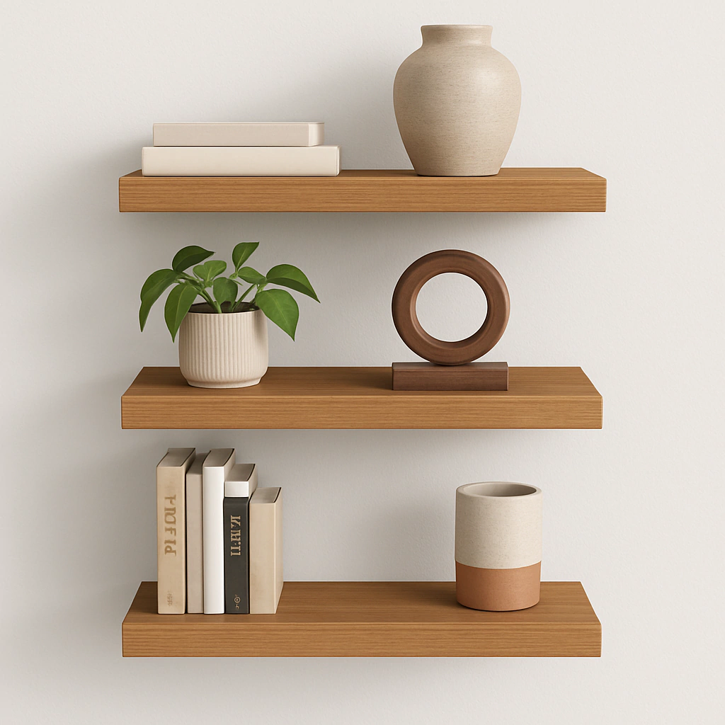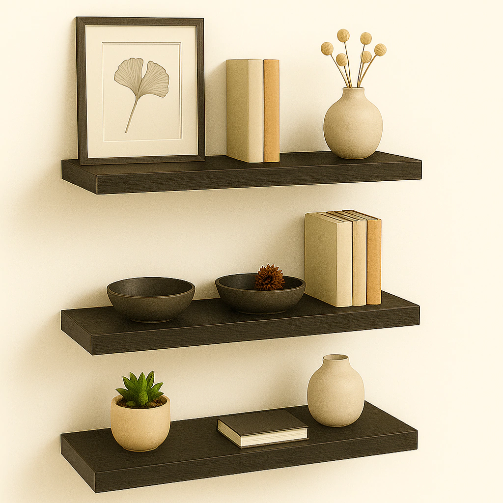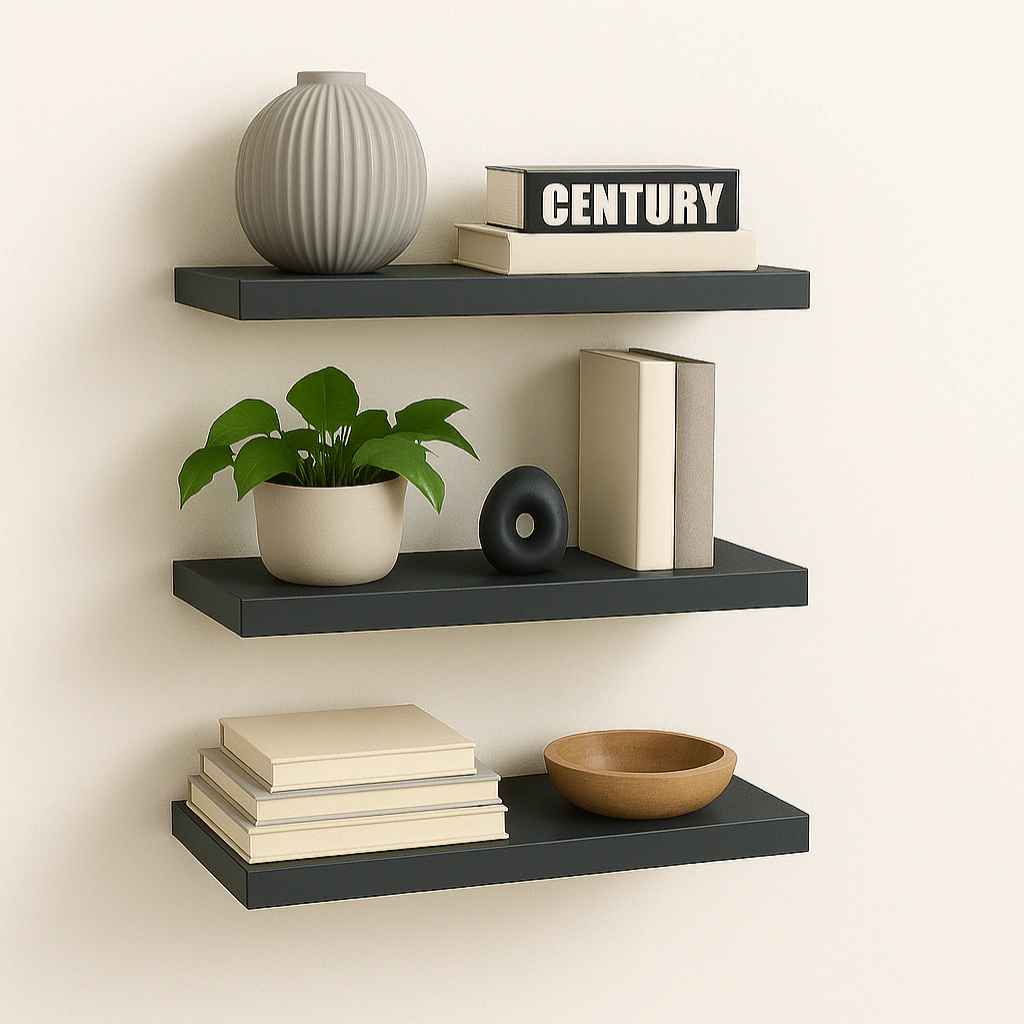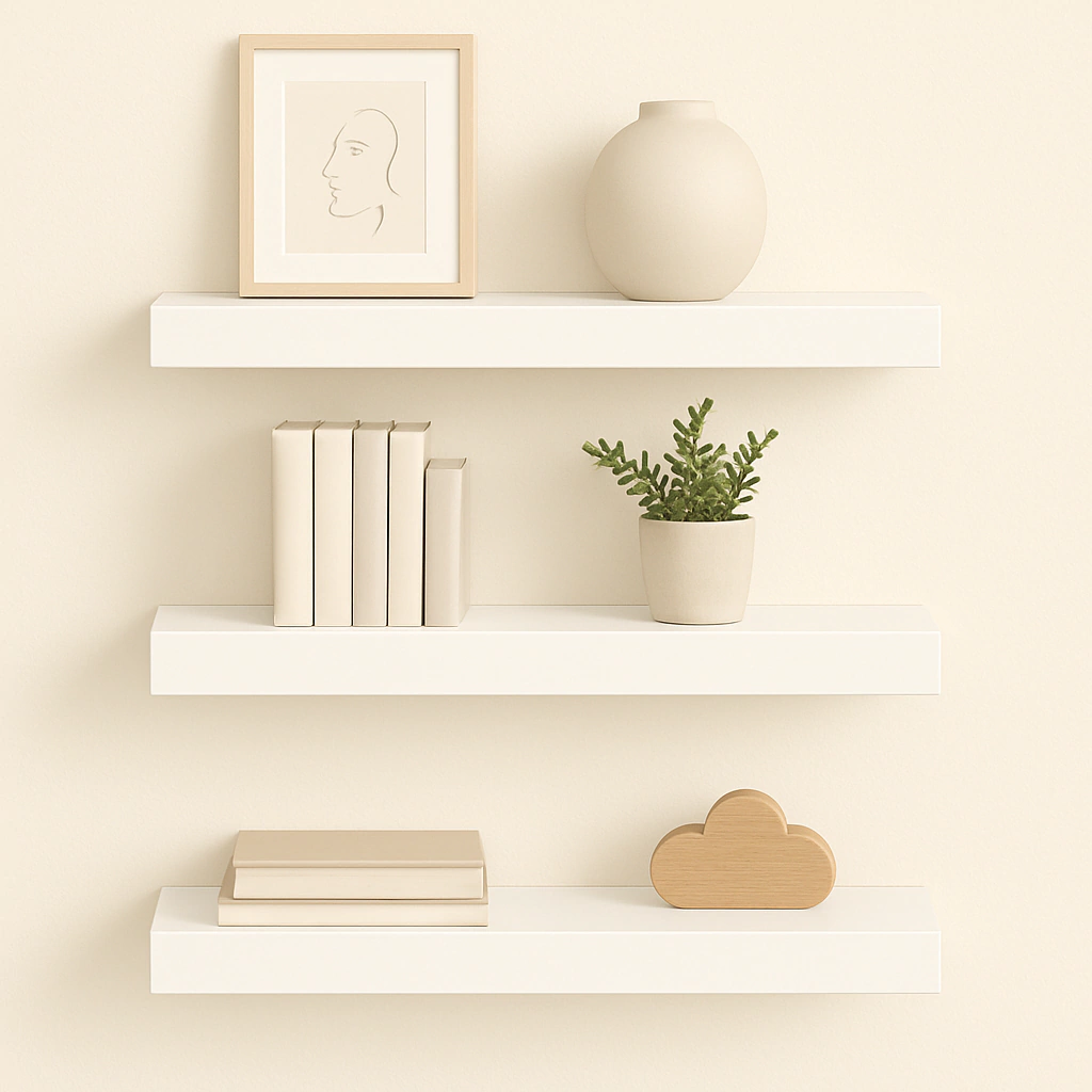 Maximizá el espacio con estilo y funcionalidad con este set de 3 estantes flotantes. Ideales para exhibir libros, cuadros, plantas o elementos decorativos, estos estantes ofrecen una solución práctica y estética para organizar ambientes reducidos o destacar paredes vacías. Su sistema de fijación oculta brinda una instalación limpia, segura y sin soportes a la vista.