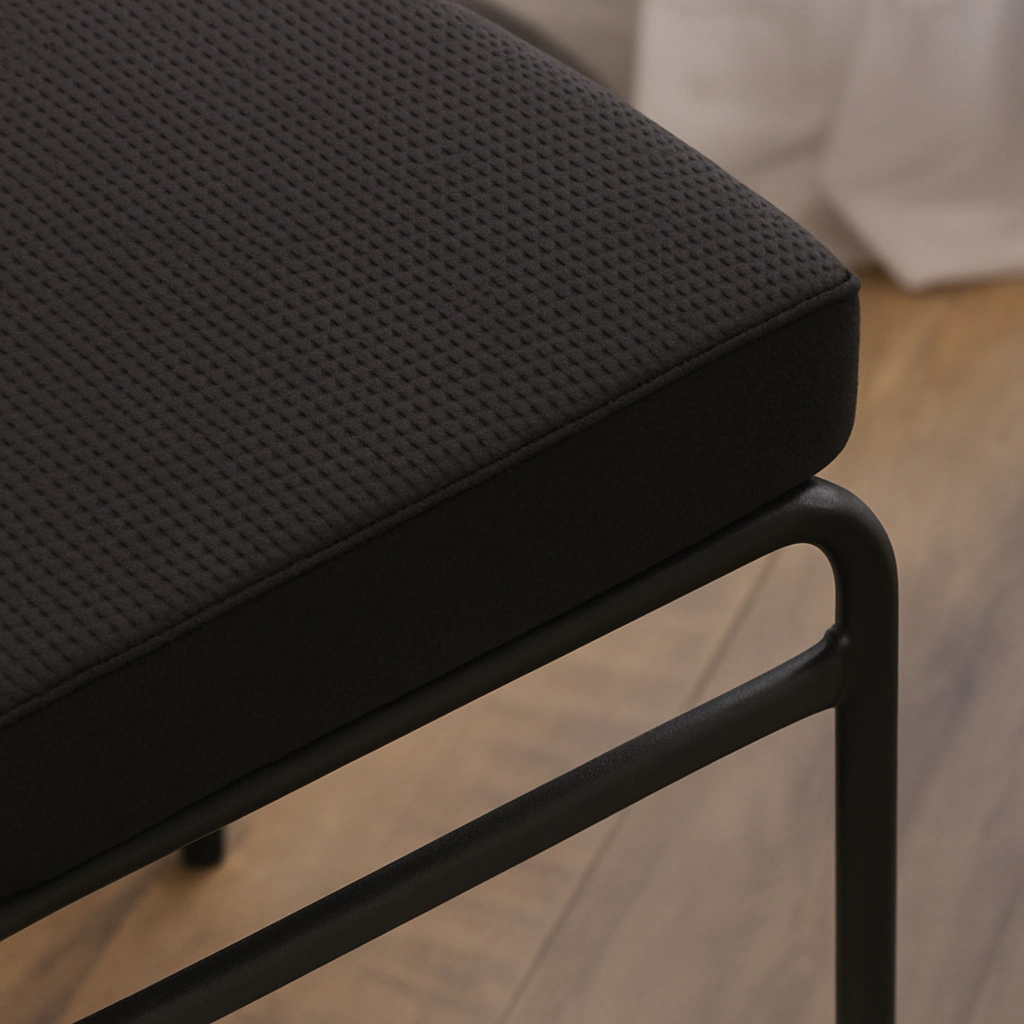 Su elegante diseño está compuesto por una estructura de hierro industrial, el cual le otorga mayor firmeza y resistencia, pintada con epoxi en color negro mate, otorgándole una mayor calidad y duración.